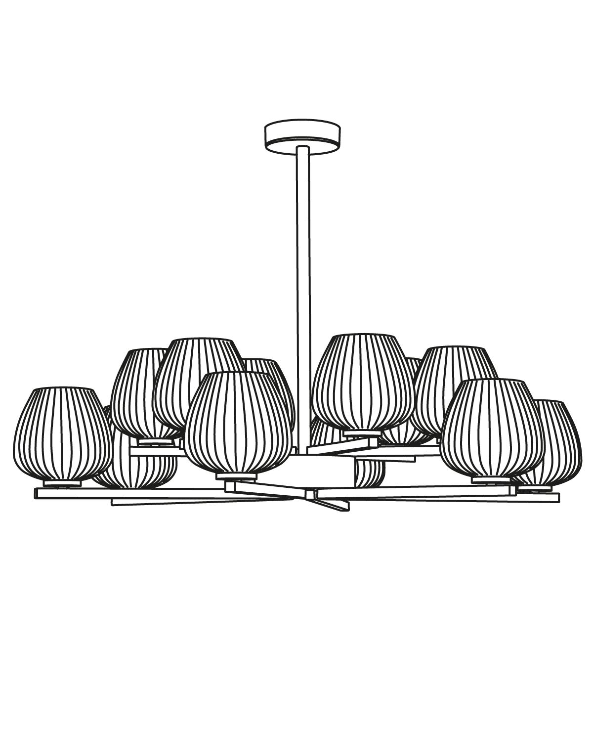 This decò-inspired line is characterized by an essential structure combined with blown glass with an elegant wavy effect obtained using antique non-circular plant molds of the Murano glass tradition.
