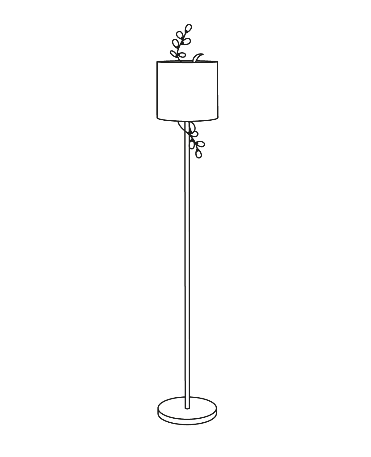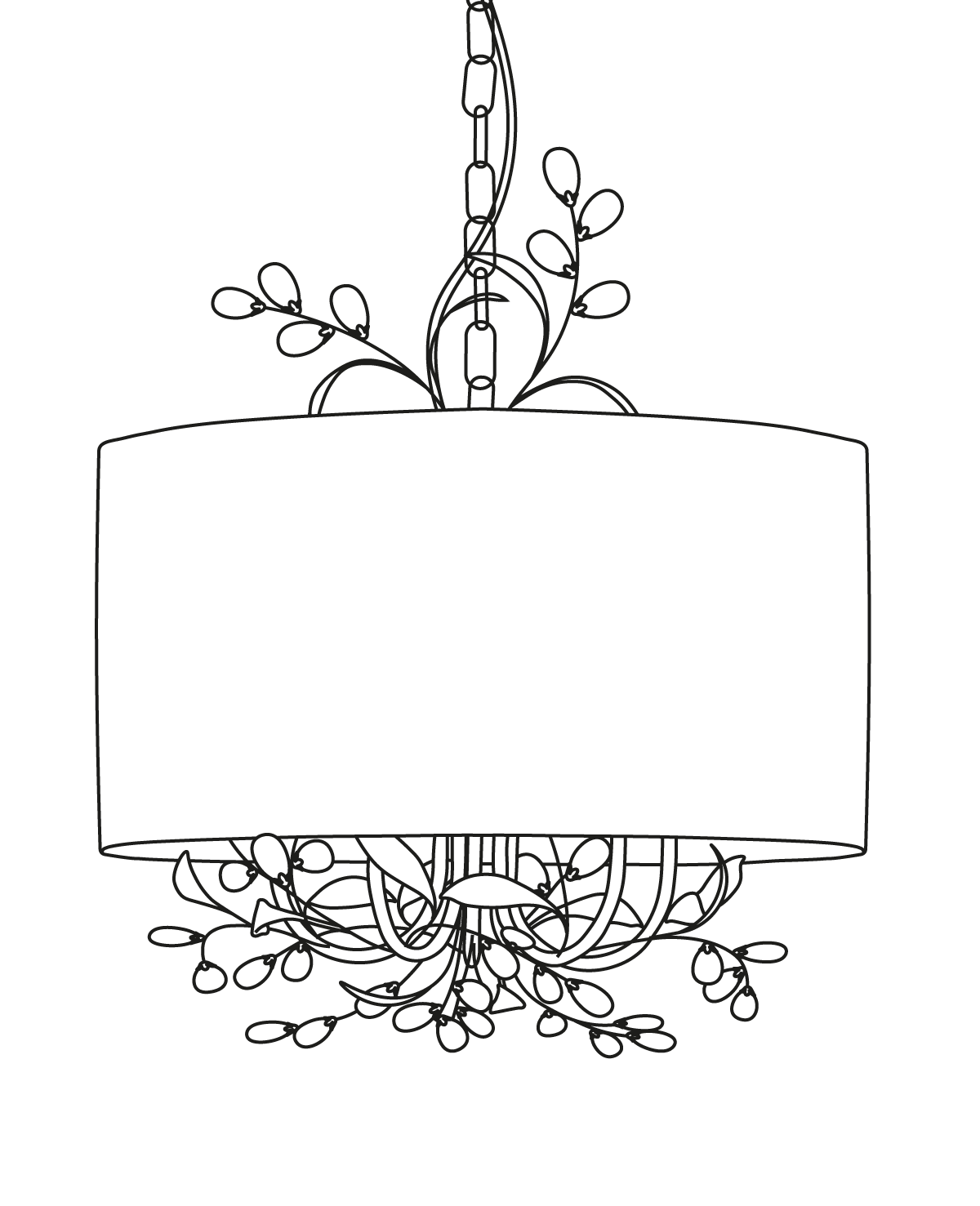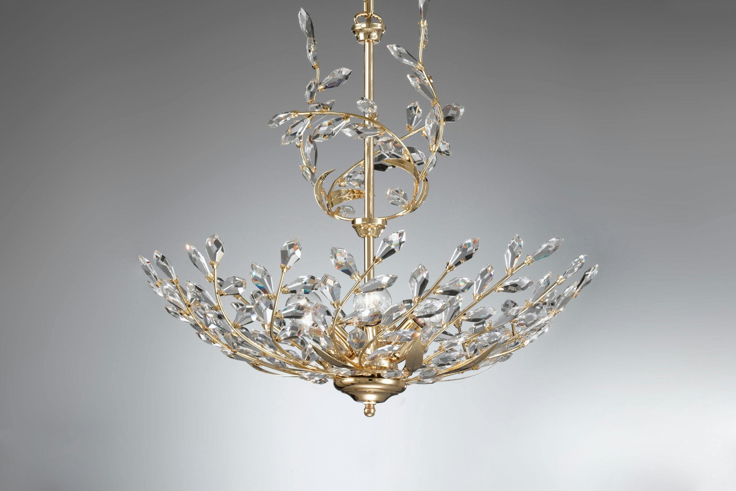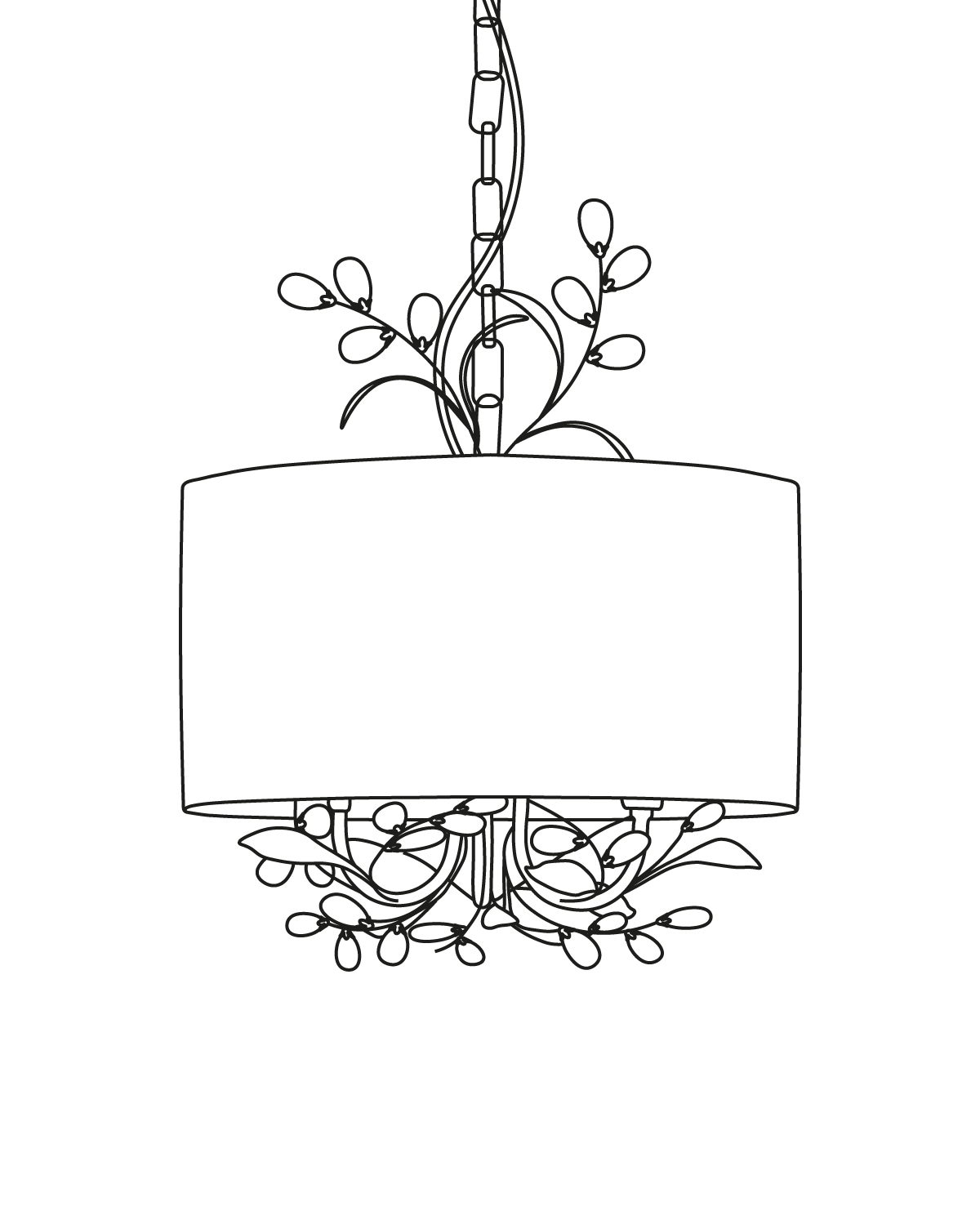 Small crystal gems create an elegant decoration in this line characterized by lights hidden inside large fabric lampshades.