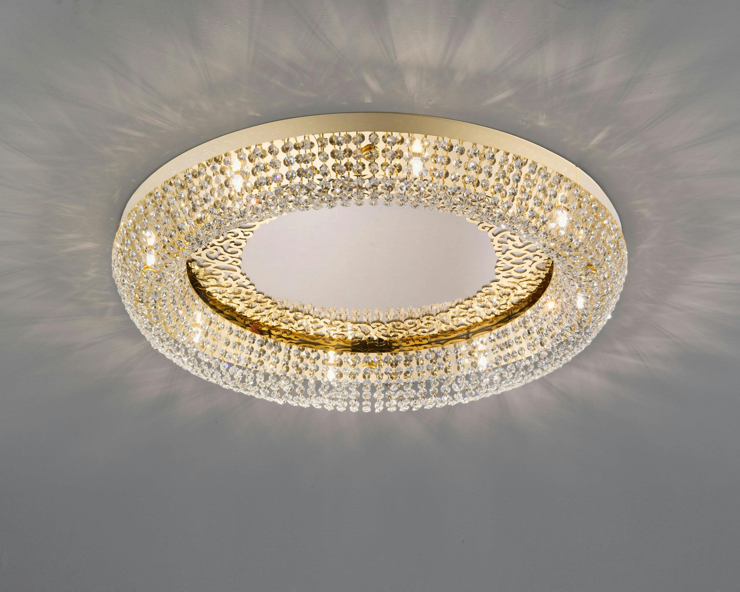 The SAH/P080 ceiling version with Gold finish, Bronzed mirror, Barò decorations and Clear AS crystals.